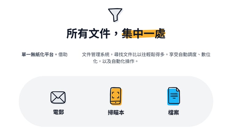 文件管理系統,尋找文件比以往輕鬆得多。享受自動調度、數位化,以及自動化操作。