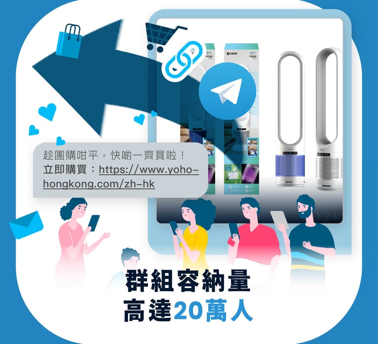 Telegram ,現時香港其中一個最受歡迎的通訊軟件,使用 Telegram 於群組中發放推廣訊息。可以輕鬆地提高你的客戶的參與度,讓他們關注我們發布的鏈結,將流量引向其他目的地:社交媒體或你的網站。此外,你也可以看到你的帖子的瀏覽量。