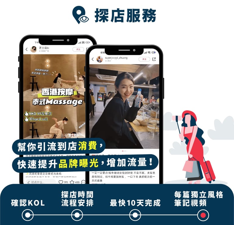 透過素人、網紅和達人的探店活動,我們能夠讓觀眾有如親身體驗的感覺。他們將前往您的店舖,體驗您的產品或服務,並透過各種媒體形式分享他們的體驗和好評。這將有效帶動消費者到店舖消費,同時提高店舖的曝光度和知名度。